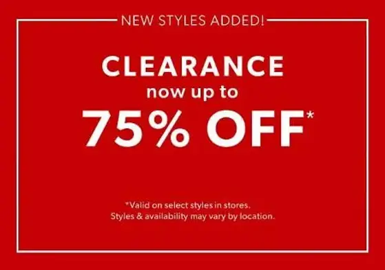 Up to 75% off select styles valid in any maurices store until October 18, 2025. While supplies last. Styles and availability may be limited by location. No coupon needed in stores.