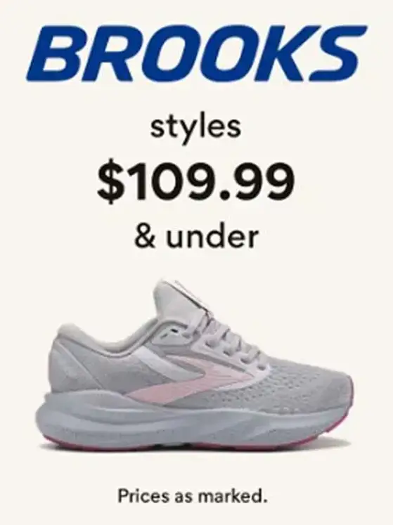 Stop by and enjoy Brooks styles $109.99 & under in store for a limited time.